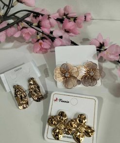 PENDIENTES SEMILARGOS CON PIEDRAS NUDE Y FILO DORADO M.NAC-30