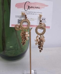 PENDIENTES SEMILARGOS CON PIEDRAS BEIGES Y FILO DORADO M.558-B