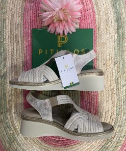 SANDALIA CON CUÑA Y TIRAS CRUZADAS METALIZADAS M.11060 ORO DE PITIILOS