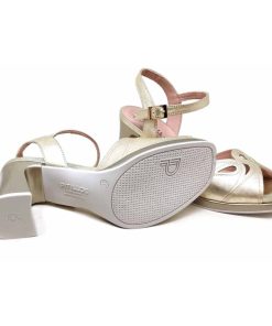 SANDALIA DE TACÓN ELEGANTE CON COMBINADA EN ACABADO LISO Y METÁLIZADO M.11224 ORO