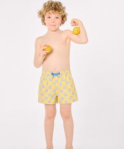 Bañador corto infantil con divertido estampado de tortugas marinas repartidas por toda la prenda. El tejido es ligero y está preparado para juegos intensos en el agua.