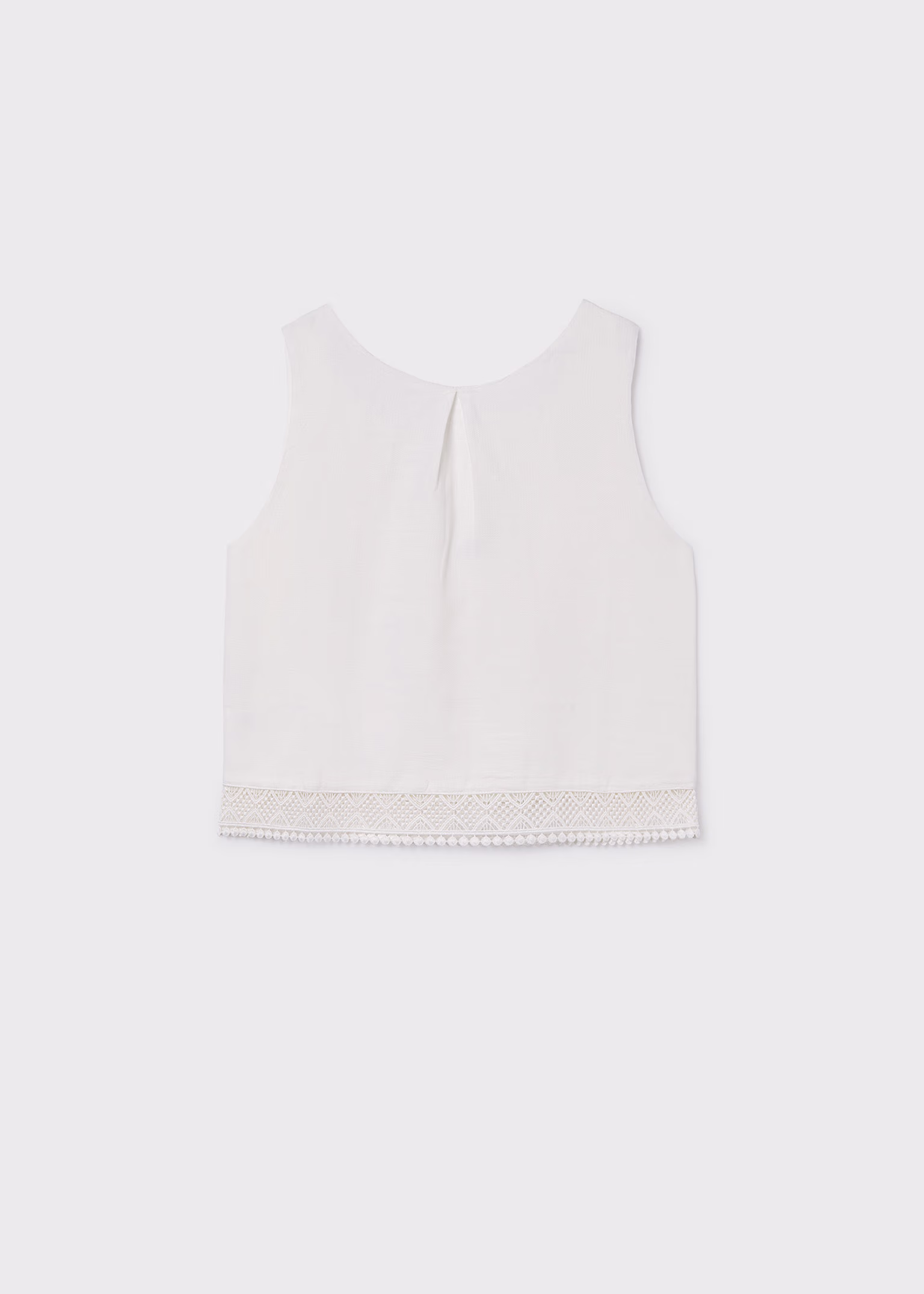 Blusa para chica confeccionado en un tejido ligero. Presenta un acabado decorativo en la parte inferior, con detalles bordados.