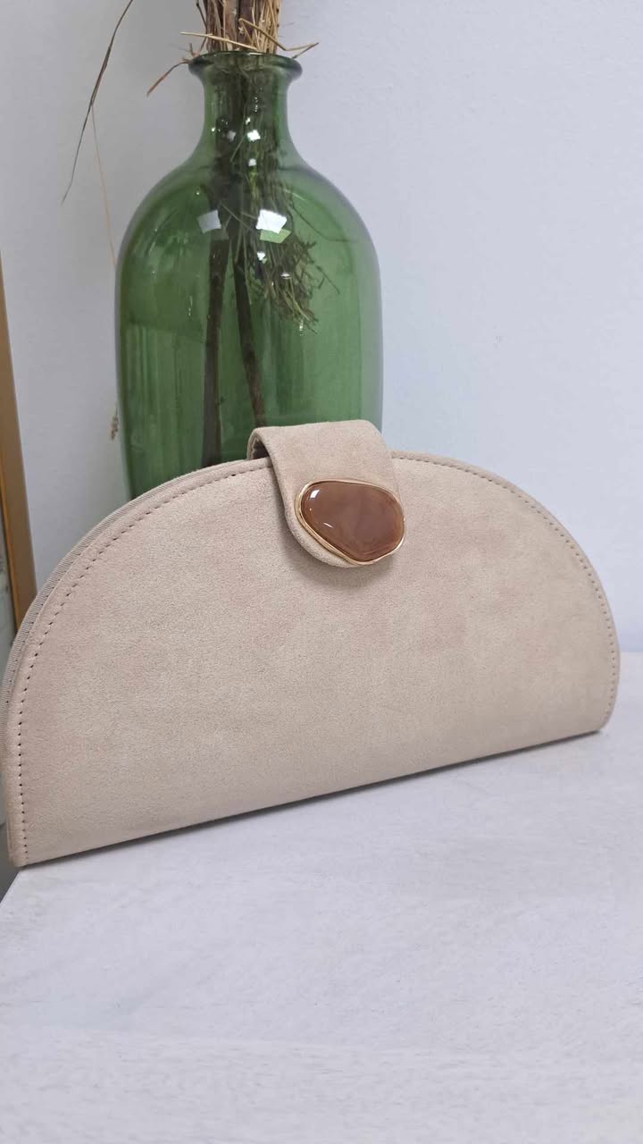BOLSO ELEGANTE CLUTCH DE FIESTA EN FORMA DE MEDIA LUNA.