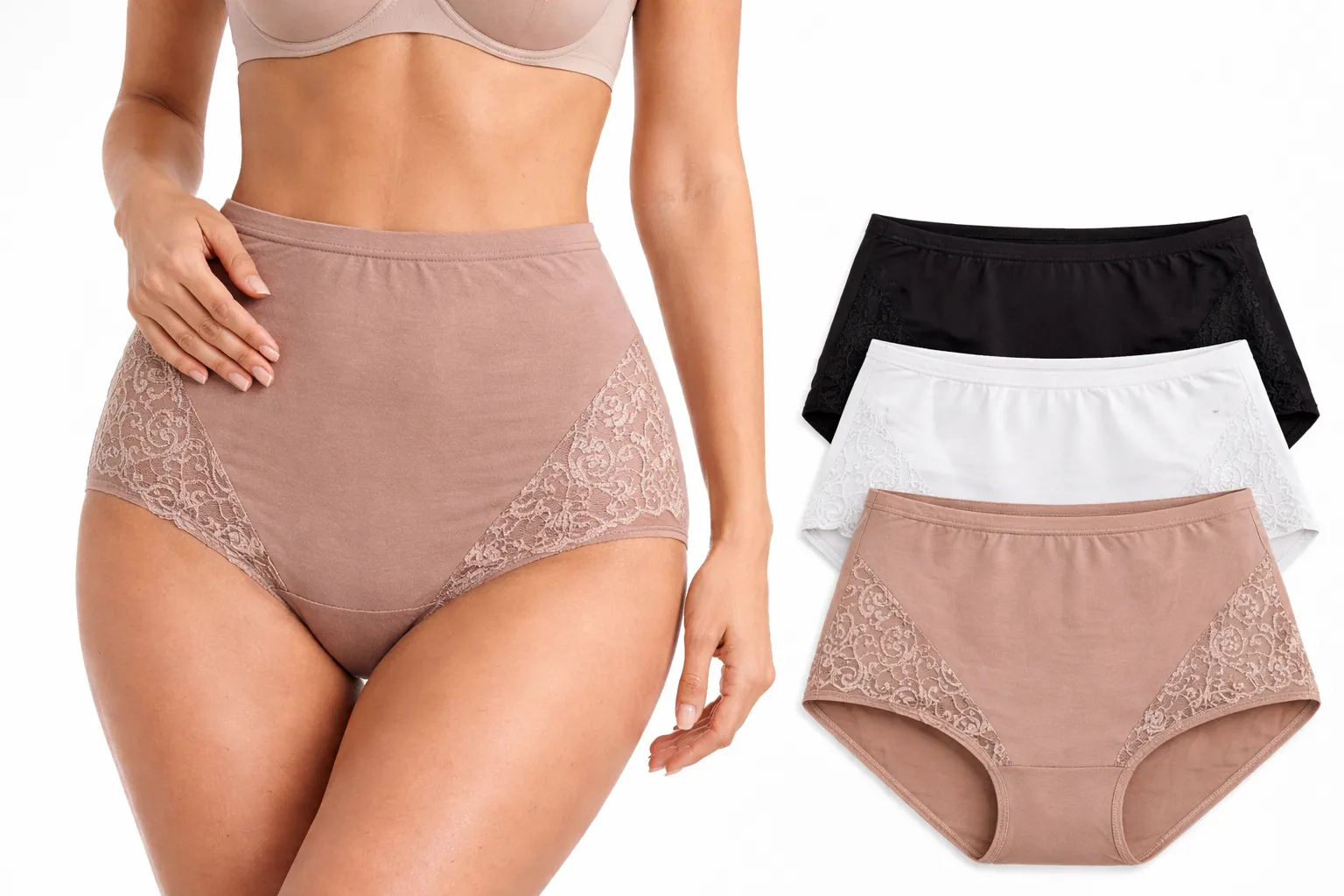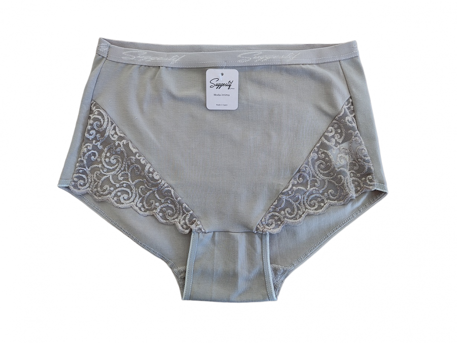 La braga alta con blonda M.1670 Morean combina la suavidad del algodón con un diseño femenino y elegante. Su altura alta-media ofrece mayor cobertura y una sensación de sujeción cómoda, ideal para el uso diario.