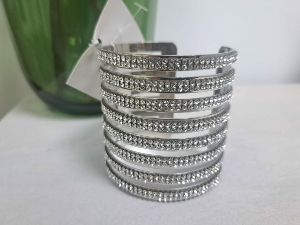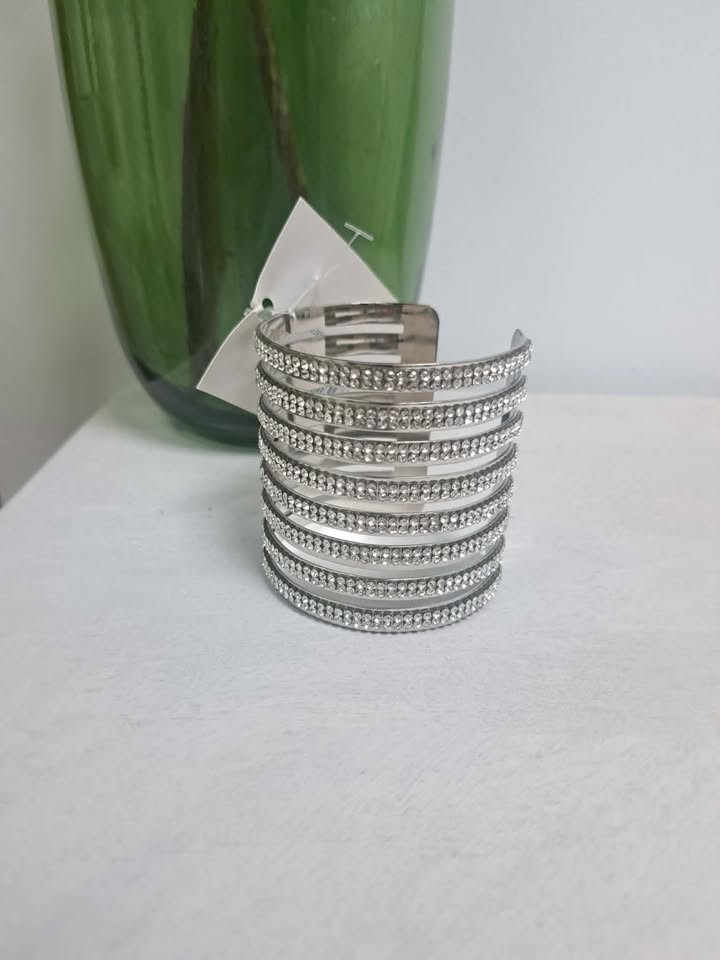 Brazalete plateado con pequeños diamantes.