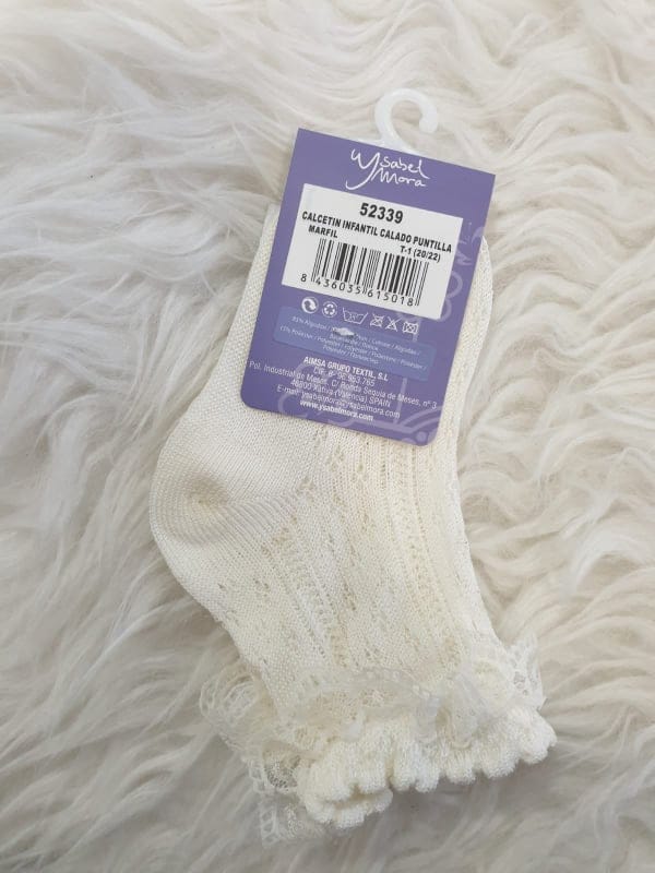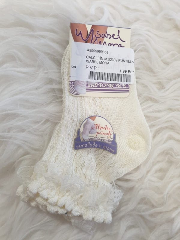 Calcetín Ysabel Mora con puntilla en color marfil.