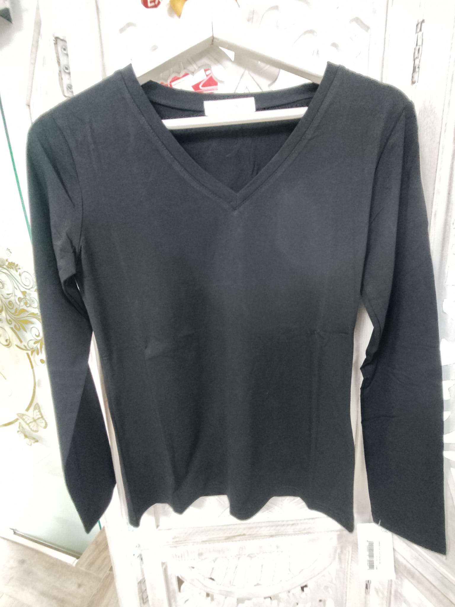 Camiseta de manga larga confeccionada en tejido suave y ligero, ideal para el uso diario. Presenta un elegante cuello en V que estiliza la silueta y un diseño liso, fácil de combinar y atemporal. Su corte recto ofrece comodidad y versatilidad, perfecta tanto para looks casuales como para llevar bajo chaquetas o abrigos.