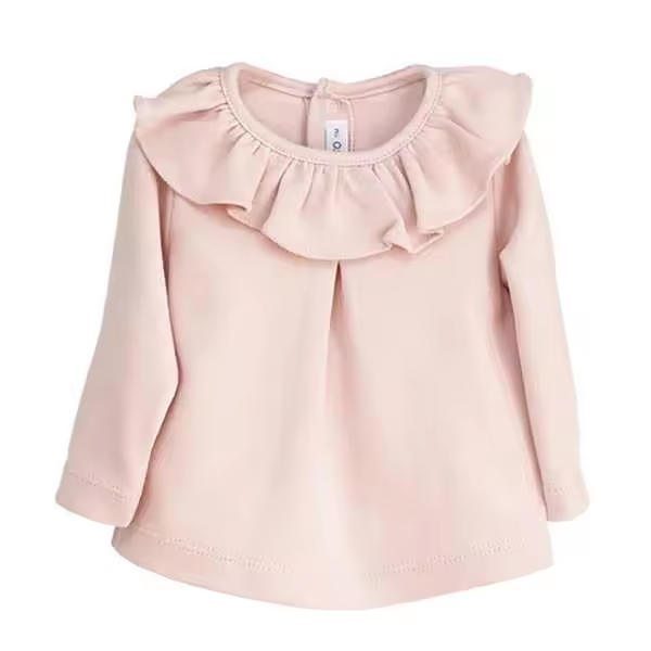 Precioso modelo de camiseta en tejido algodón con cuello redondo y volante.