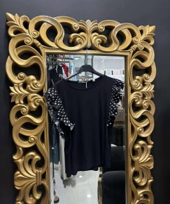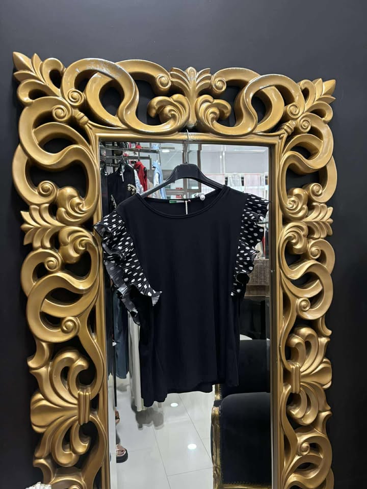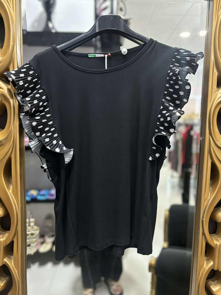 CAMISETA NEGRA CON MANGAS PLISADAS ESTAMPADA DE LUNARES