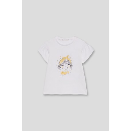 CAMISETA ESTAMPADA EN COLOR BLANCO Y AMARILLO