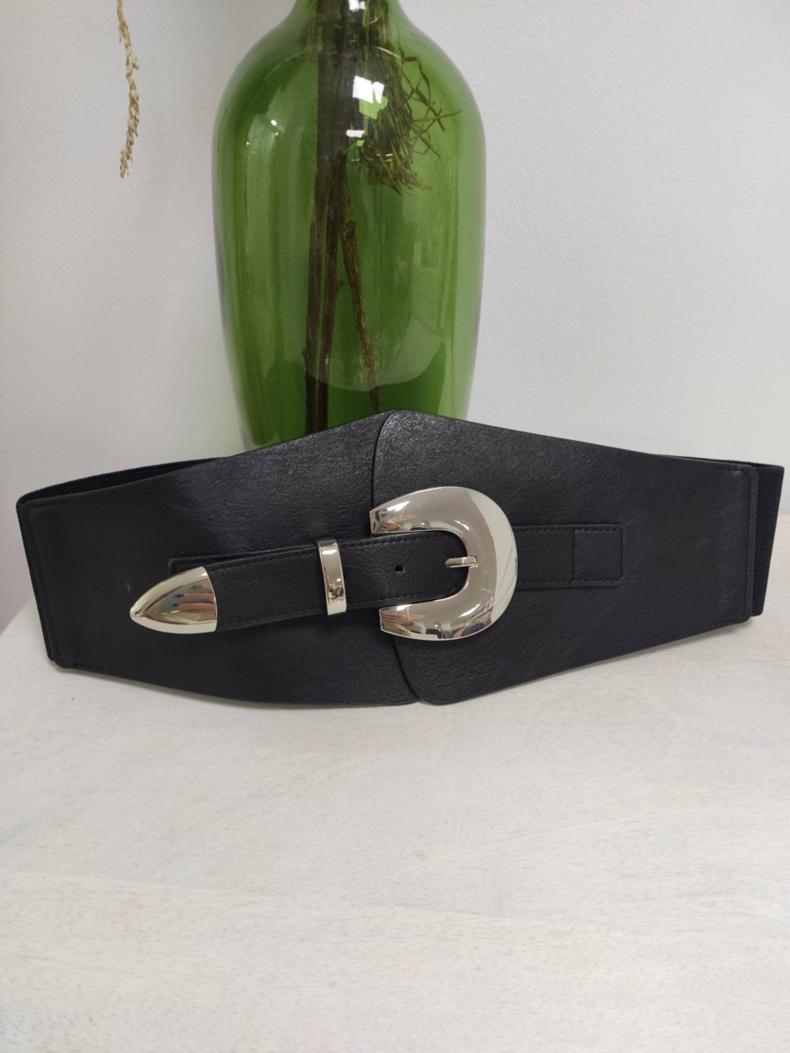 CINTURÓN ELÁSTICO ANCHO COLOR NEGRO PARA UN AJUSTE CÓMODO.