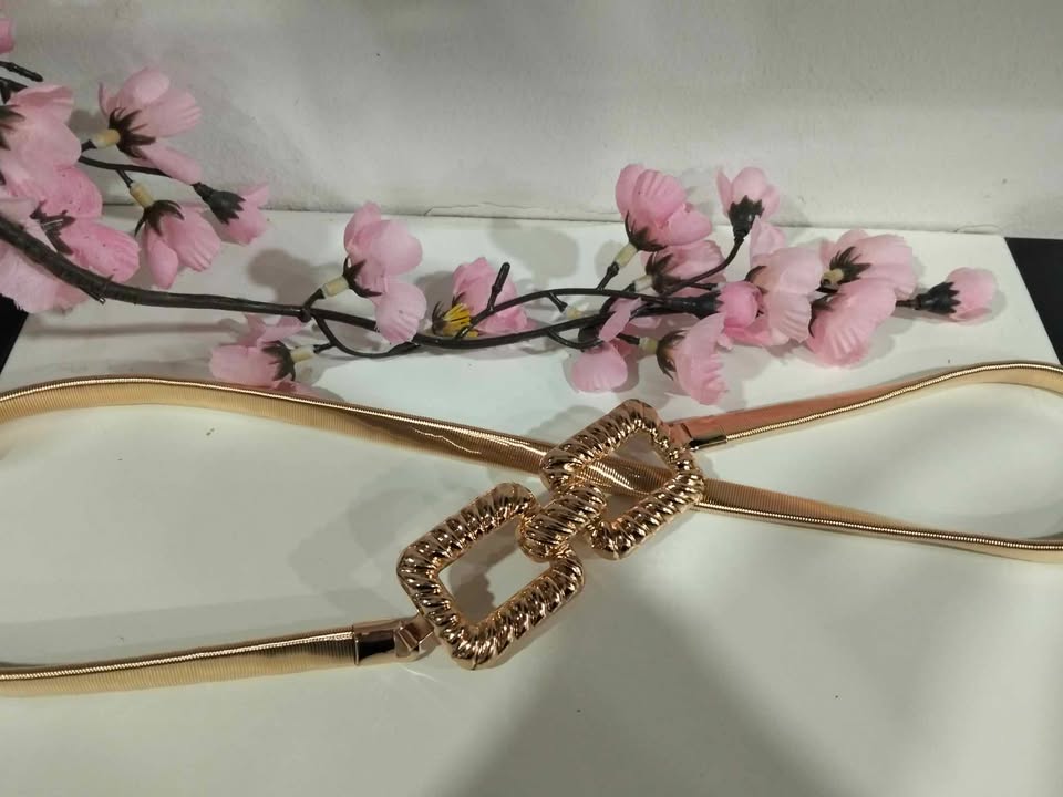 CINTURÓN DE VESTIR ELÁSTICO CON HEBILLAS ENTRELAZADAS DORADAS.