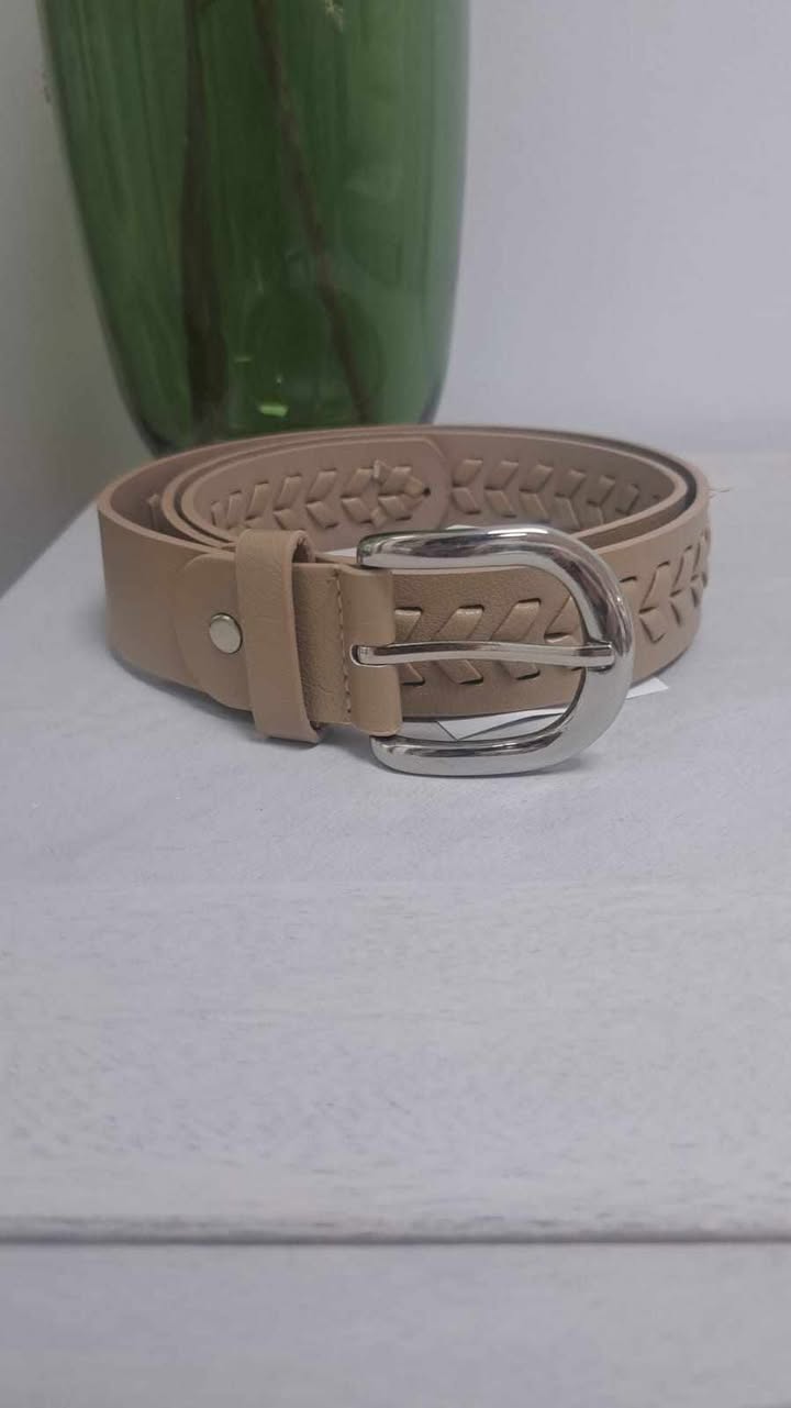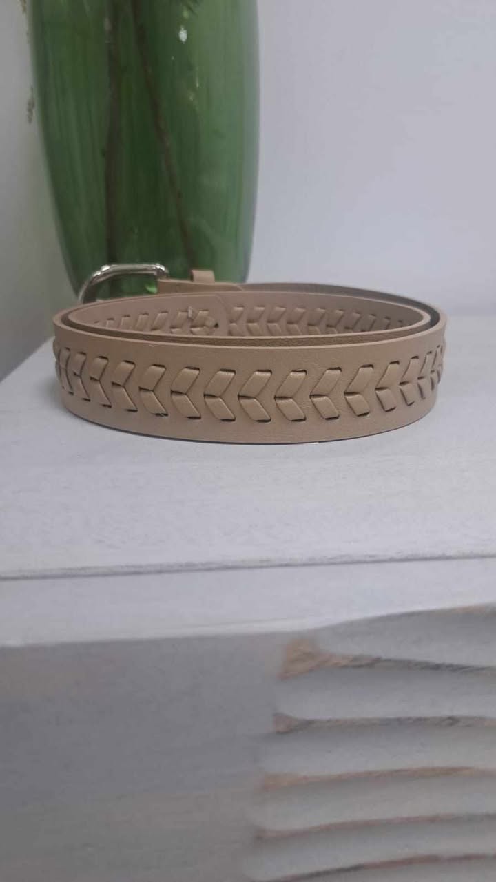 CINTURÓN DE CUERO TRENZADO EN COLOR ARENA.