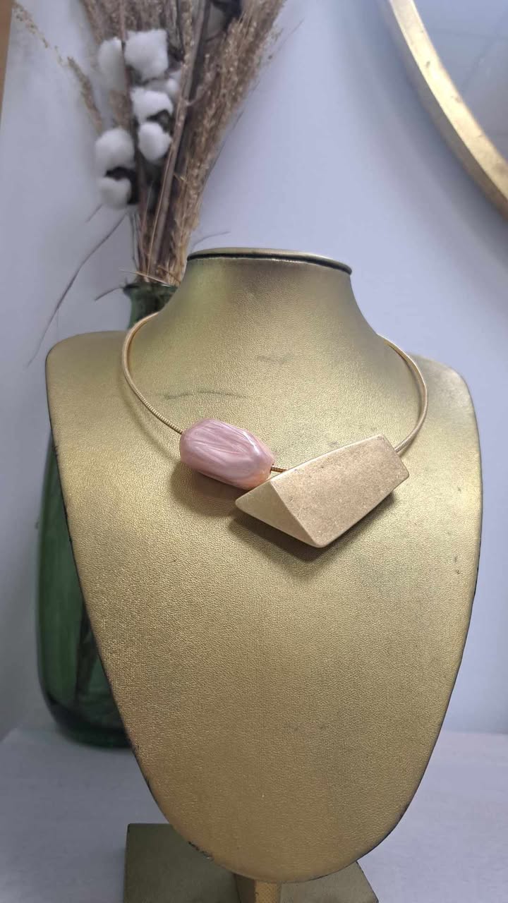 PIEZA GEOMÉTRICA DORADA DE FORMA TRAPEZOIDAL QUE APORTA CONTRASTE MODERNO Y ESTRUCTURADO.