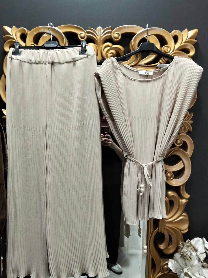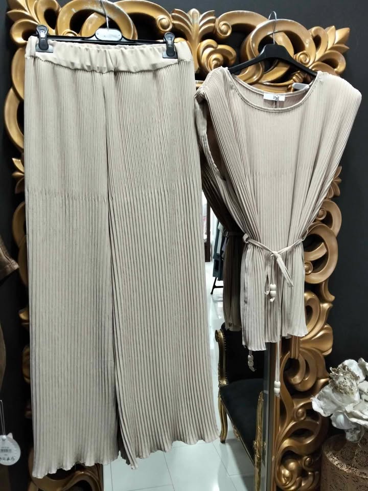 CONJUNTO DE DOS PIEZAS DE TIRANTAS EN COLOR BEIGE.