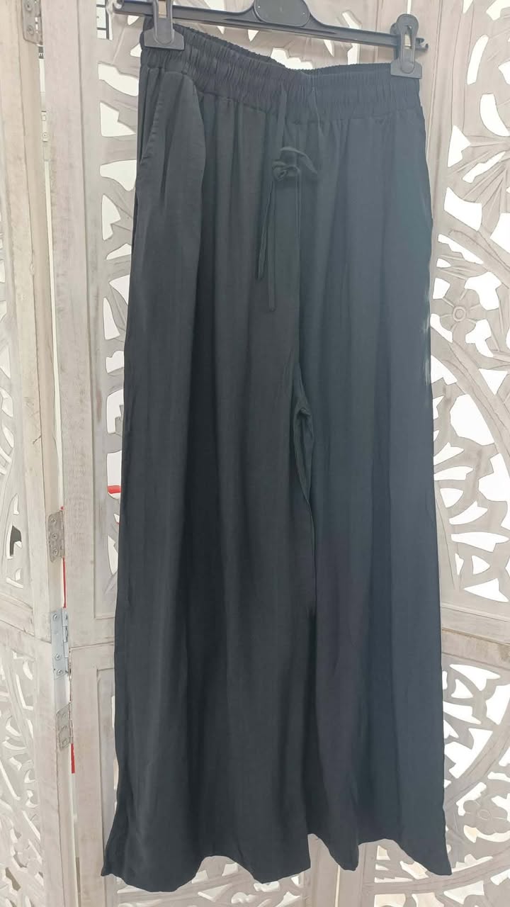 PANTALÓN TIPO PALAZZO, PIERNA ANCHA Y CORTE FLUIDO. GARANTIZA COMODIDAD Y VERSATILIDAD.