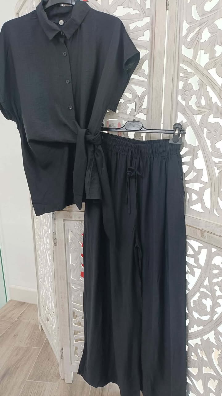 CONJUNTO DE DOS PIEZAS ESTILO INFORMAL Y RELAJADO EN TONO NEGRO, IDEAL PARA EL VERANO Y ESTAR CÓMODA.