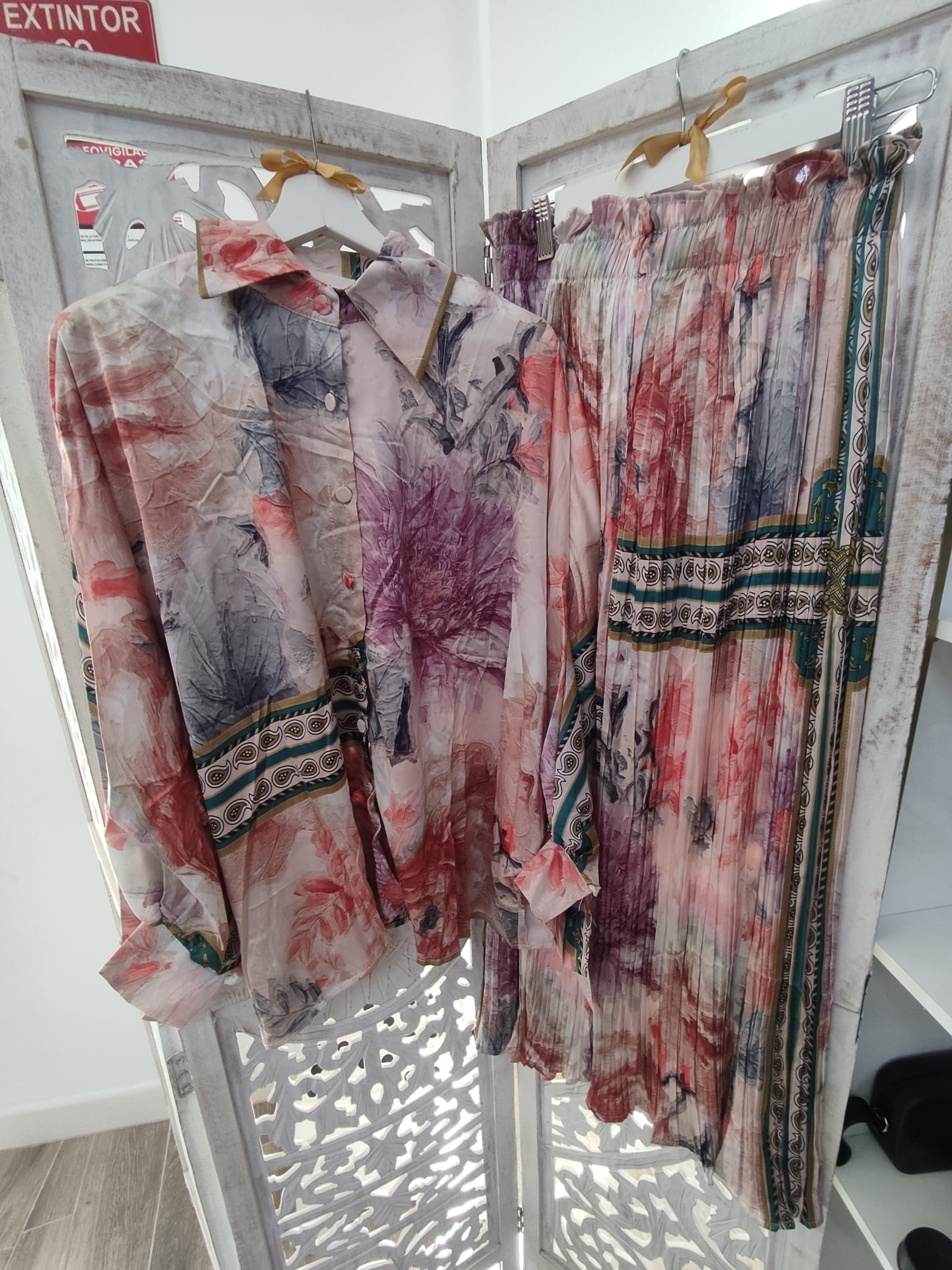 CONJUNTO ESTAMPADO DE PANTALÓN PLISADO Y CAMISA