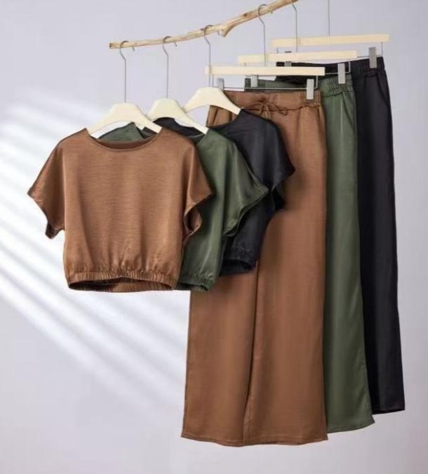 CONJUNTO ESTILO DEPORTIVO DE PANTALÓN Y CAMISETA EN SATÉN.