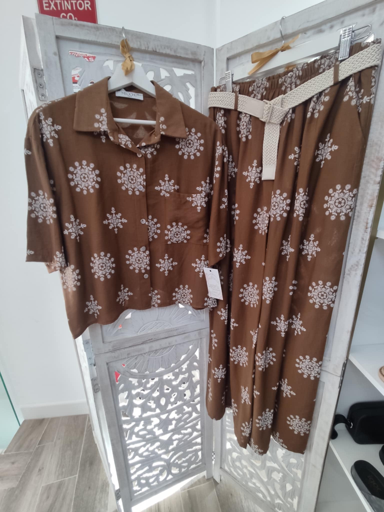 CONJUNTO MARRÓN FORMADO POR CAMISA CON BOTONADURA Y