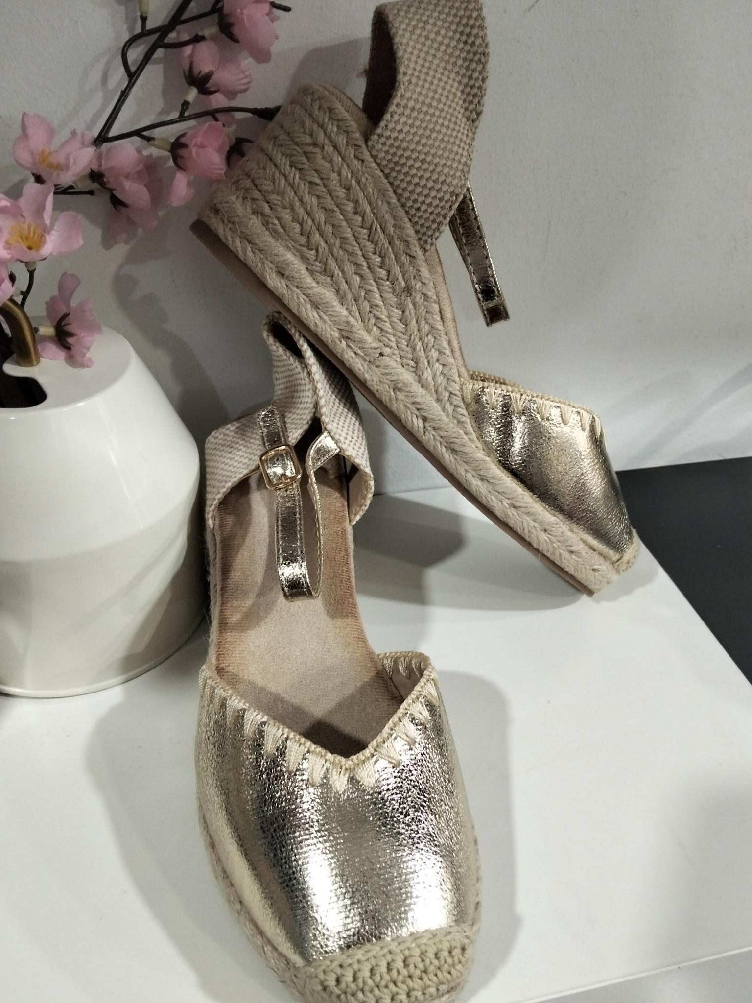 Cuñas de esparto en color oro brillo