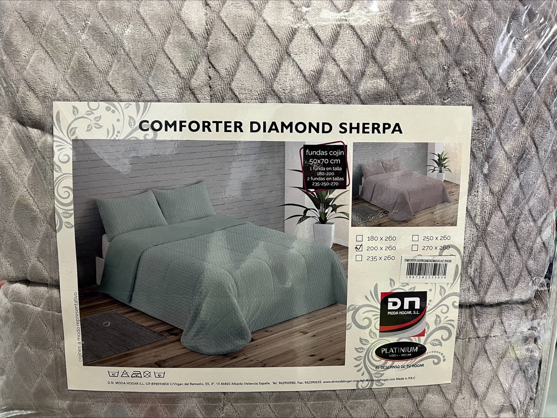 Excelente calidad, edredón suave y muy cálido. Edredón comforter confeccionado con sedalina en la cara principal y sherpa borreguito a tono en el reverso de la marca DN moda hogar.