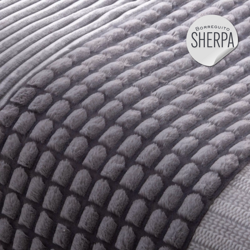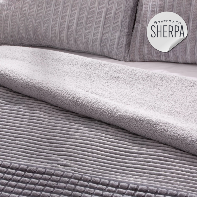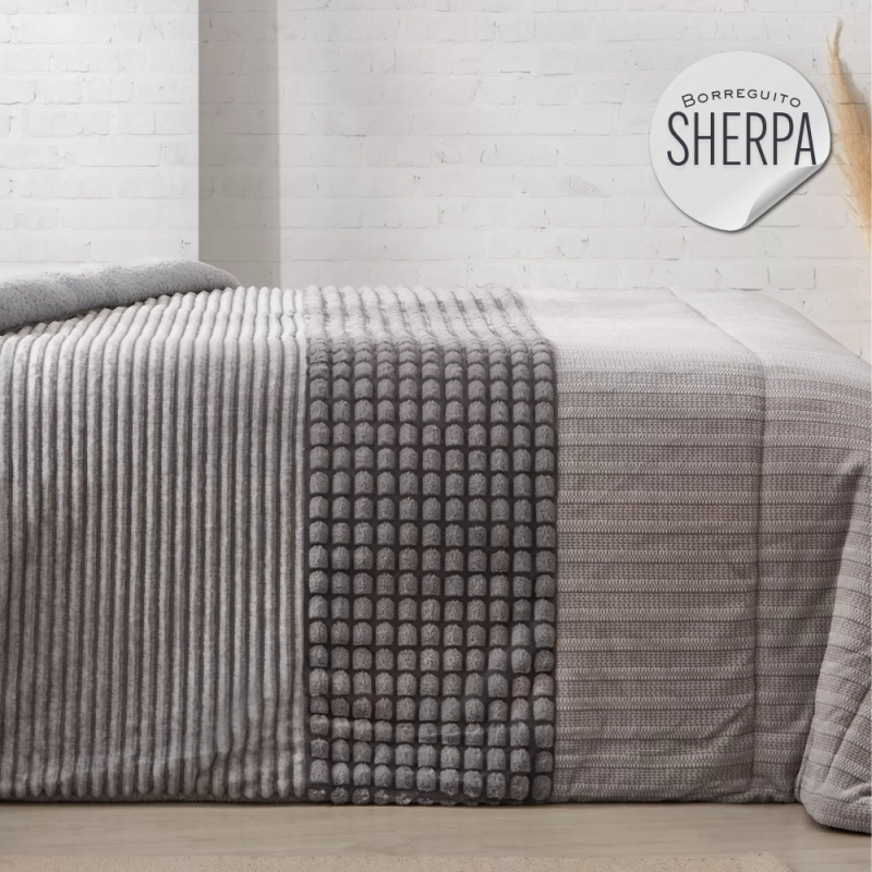Edredón Sherpa conforter Manterol Doko 070 geométrico gris con borreguito.