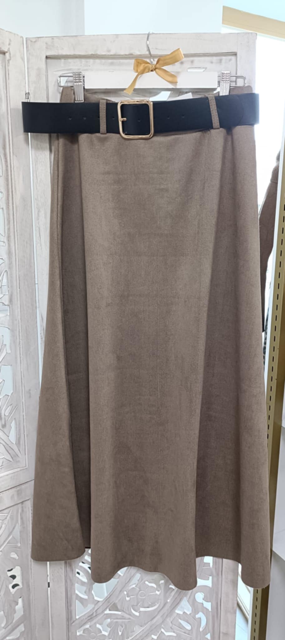 INCLUYE UN CINTURÓN ANCHO NEGRO CON HEBILLA RECTANGULAR DORADA.