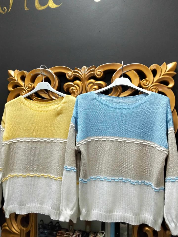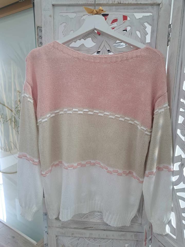 JERSEY DE HILO EN TONOS BEIGE, BLANCO Y ROSA.