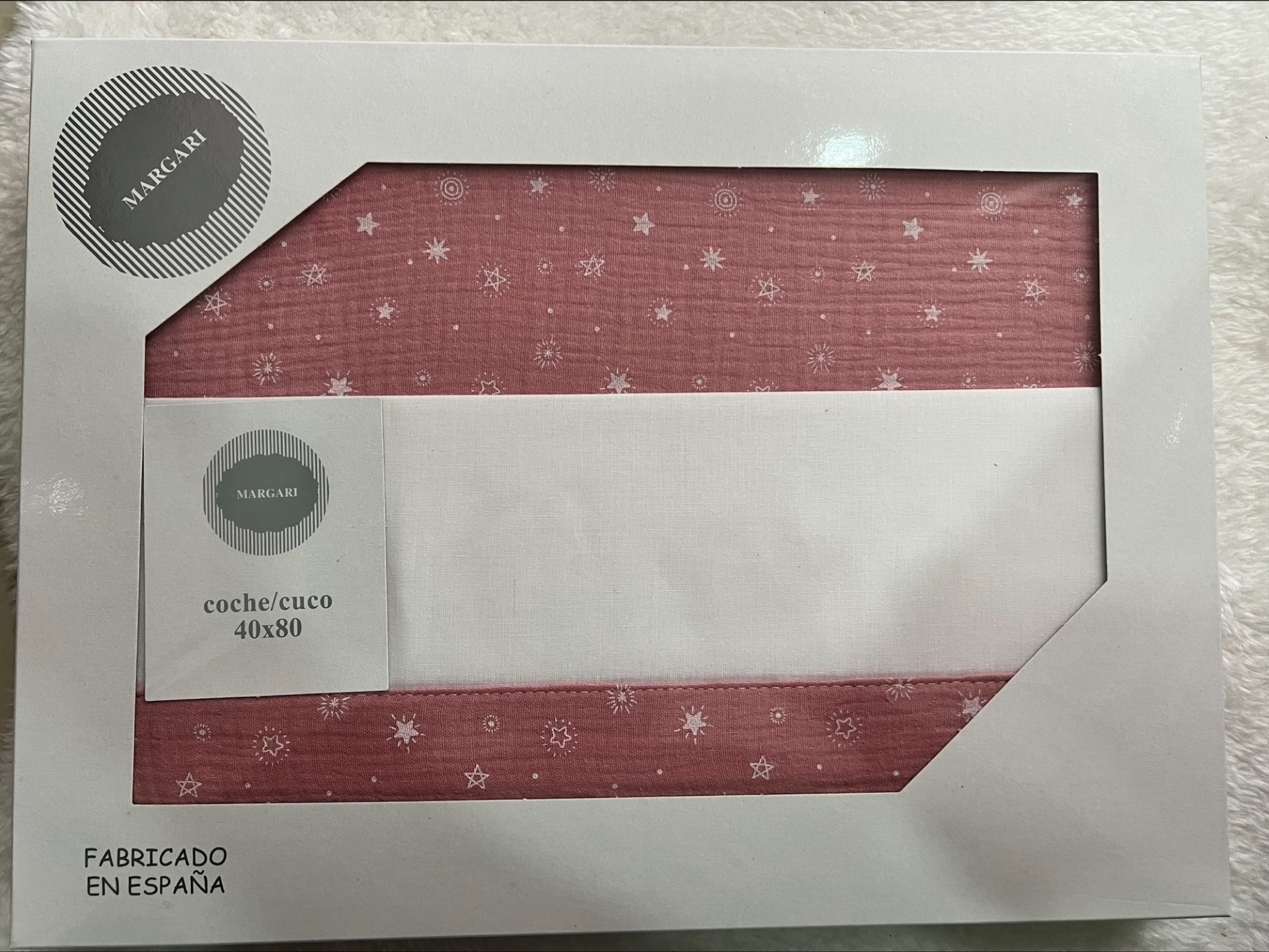 Precioso modelo de juego de tela formado por 3 piezas. Bajera+encimera+almohadón.