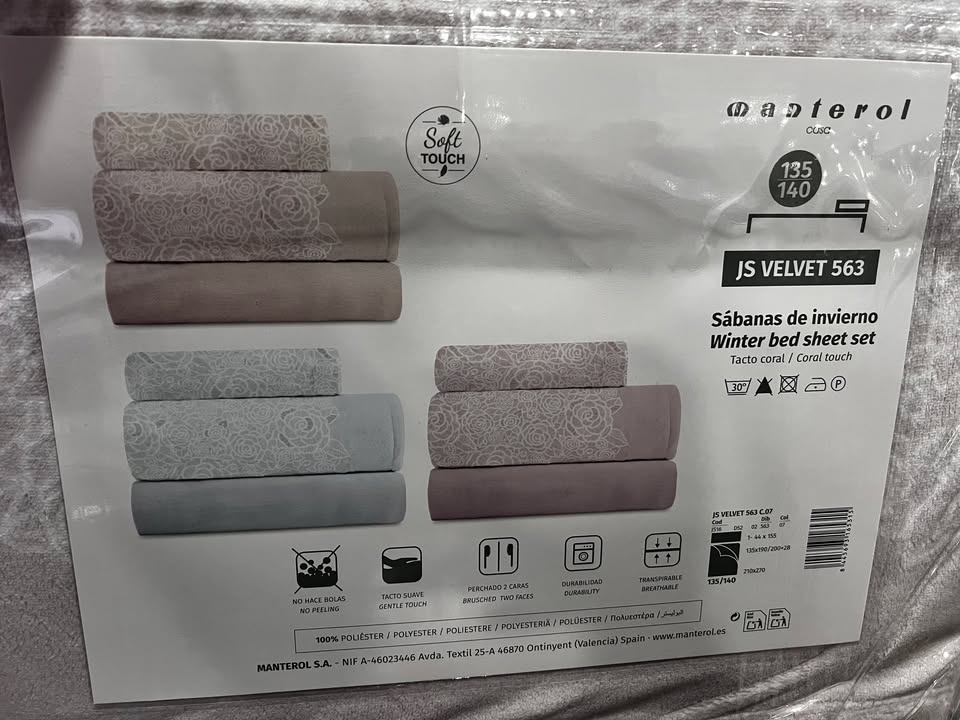 Descubre el Juego de Sábanas Velvet 563 de Manterol, confeccionado en coralina térmica de tacto terciopelo para un descanso cálido y confortable. Su diseño floral inspirado en un rosal aporta frescura y elegancia al dormitorio. Unas sábanas polares suaves, ligeras y de secado rápido, ideales para los meses más fríos. Incluyen bajera ajustable de 28 cm y fundas de almohada coordinadas.