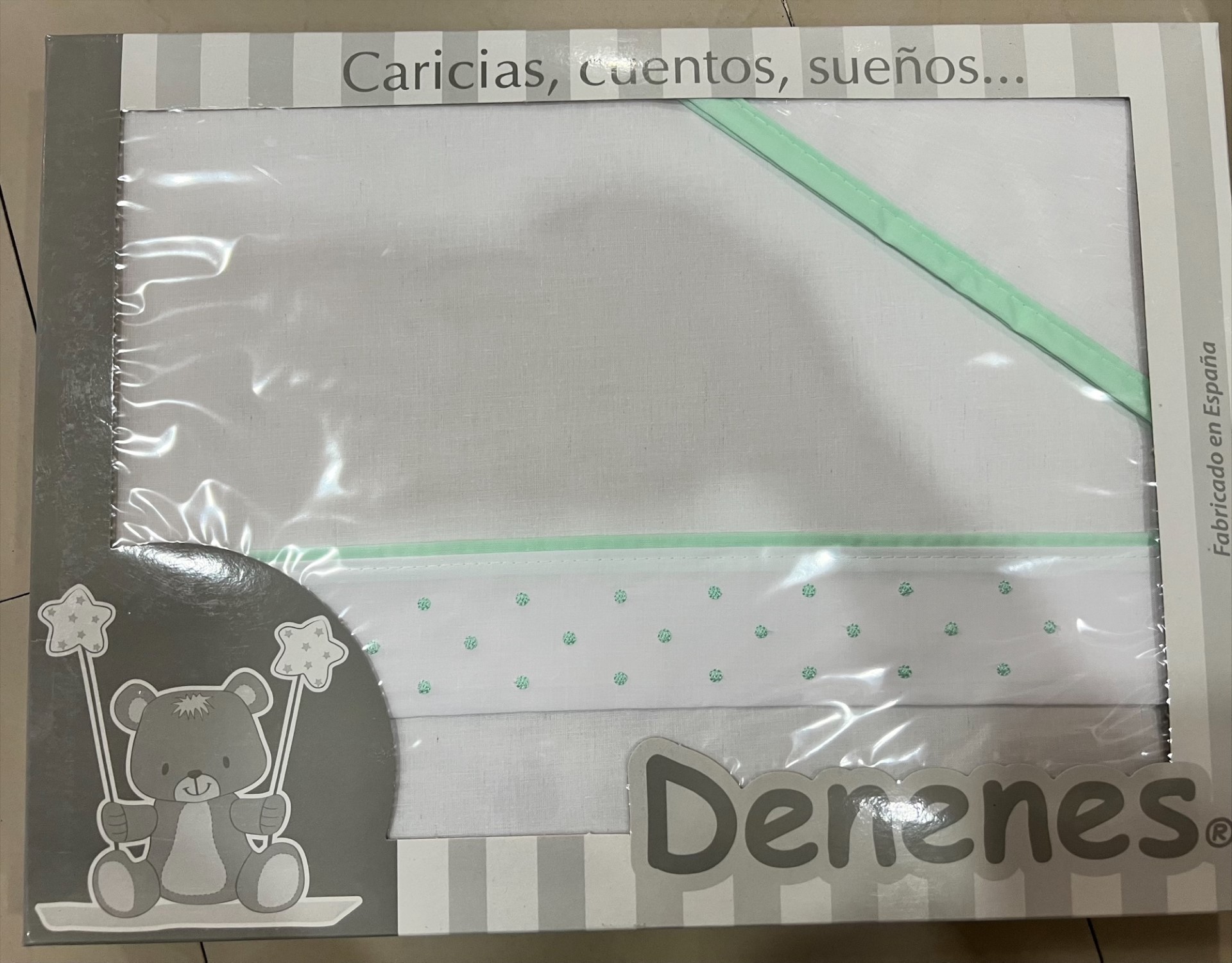 Precioso modelo de juego de sábanas para MINICUNA en tejido de tela.