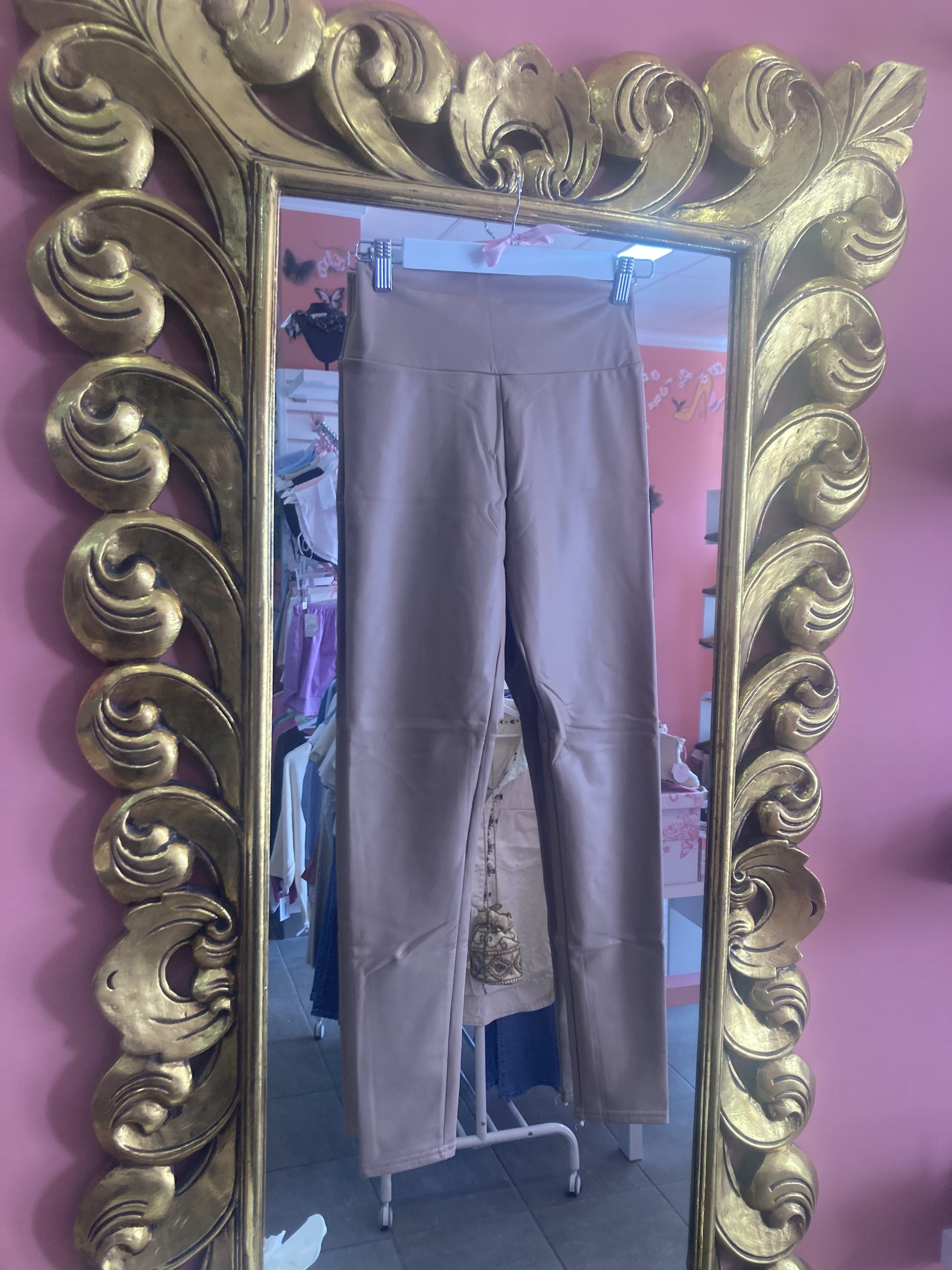 LEGINS ENCERADO EN COLOR CAMEL.