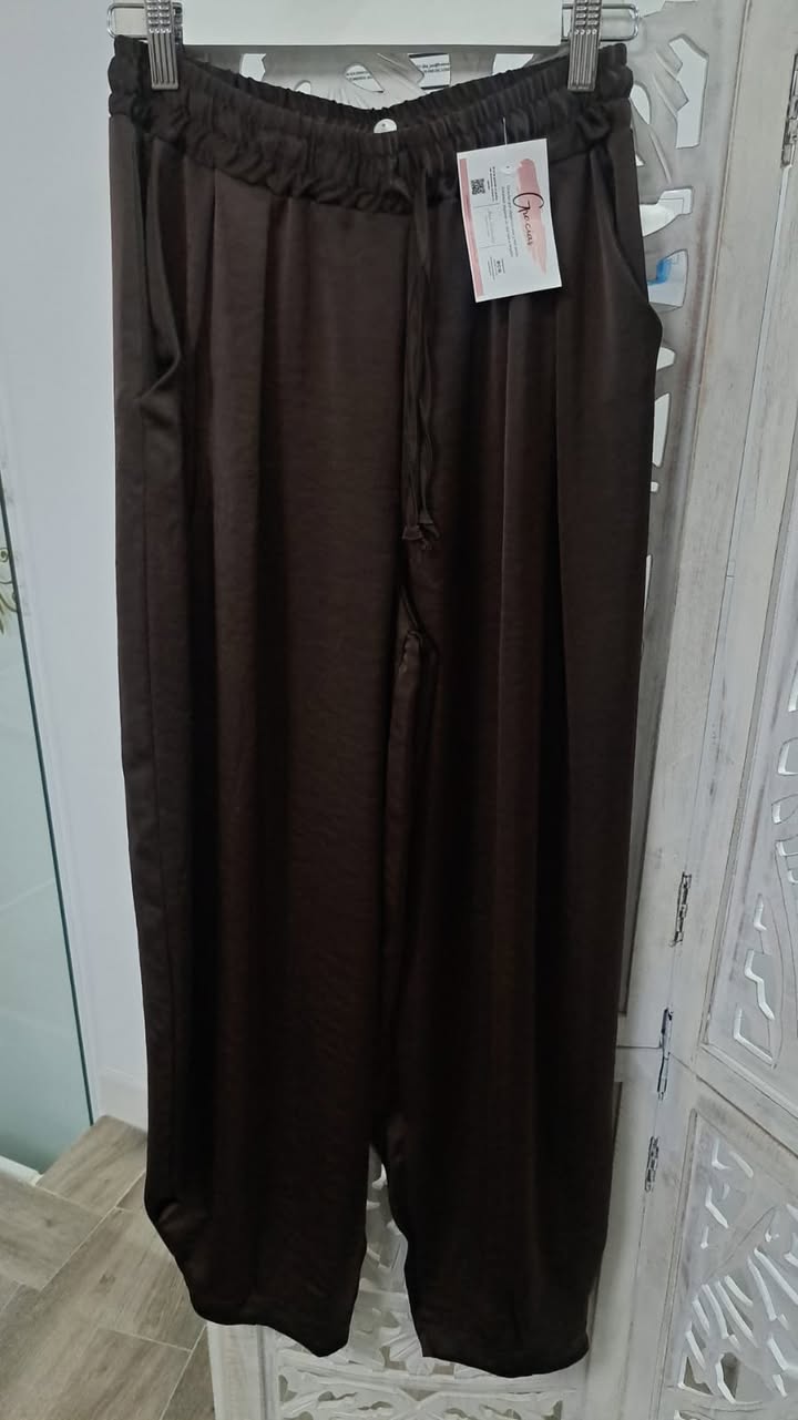 PANTALÓN FLUIDO DE COLOR MARRÓN CHOCOLATE. TALLA ÚNICA.