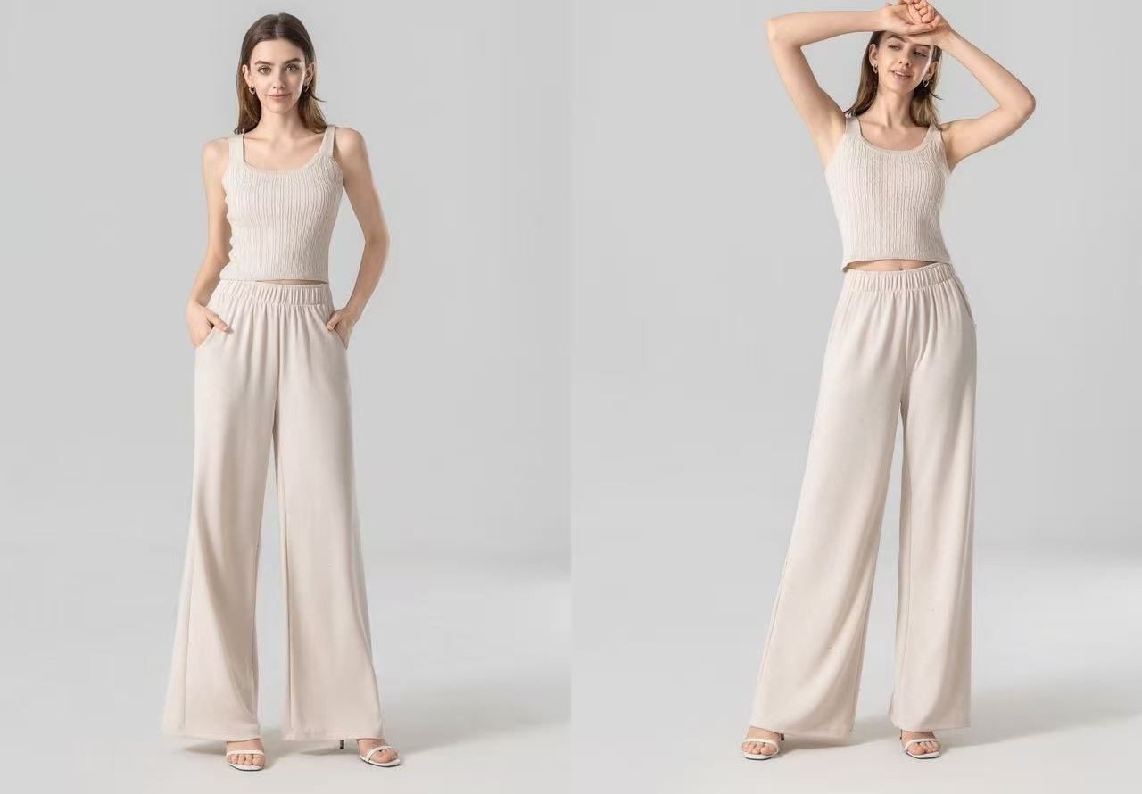 PANTALÓN PUNTO ROMA CON APLIQUES PLATA M.ROM-BEIGE
