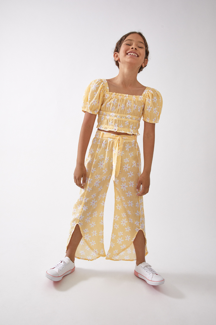 Precioso modelo de pantalón 100%algodón fresquito con aberturas en la parte baja. Estampado super original de margaritas.