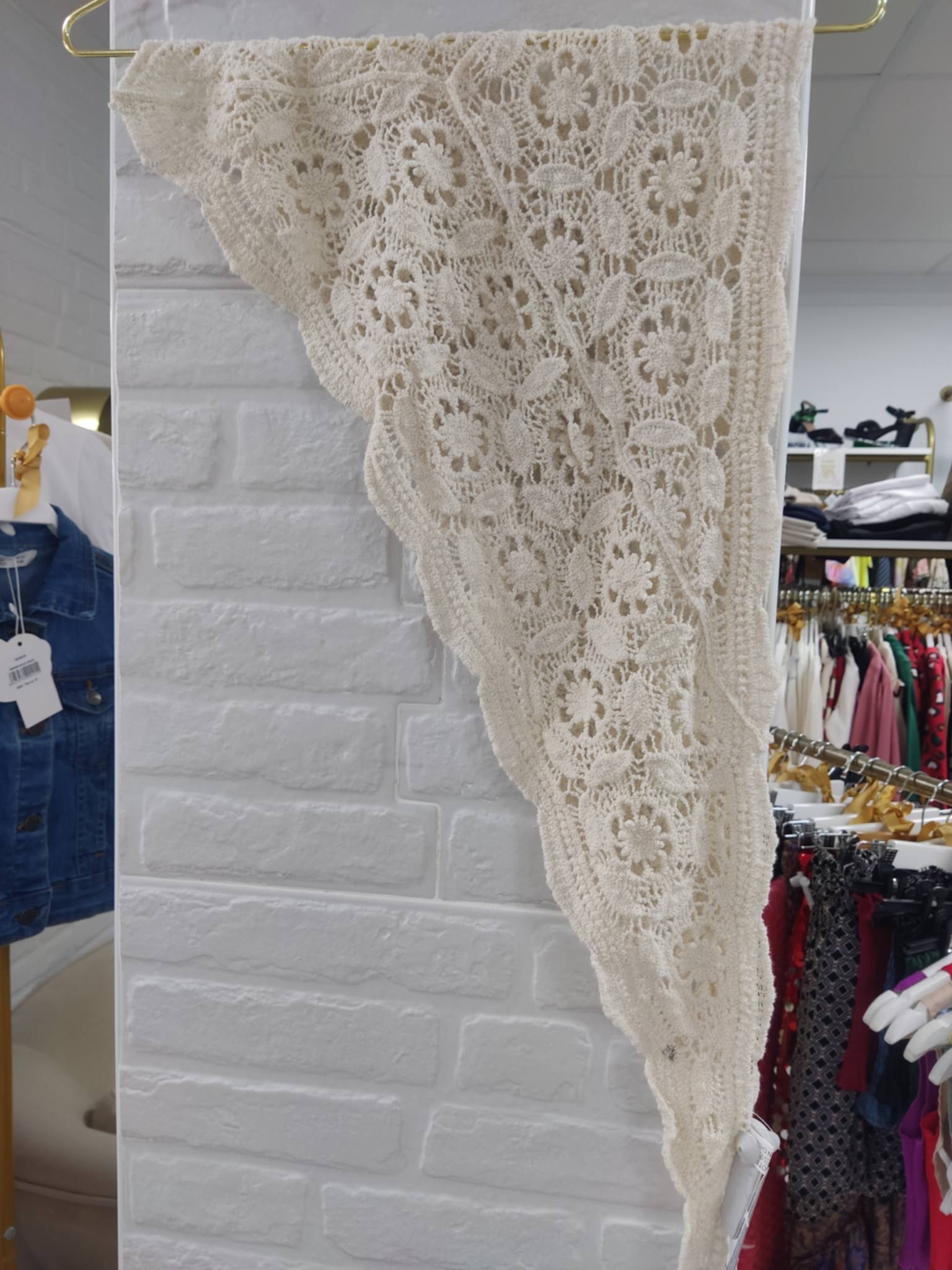 PRECIOSO Y ORIGINAL PAÑUELO DE CROCHET EN COLOR BEIGE.