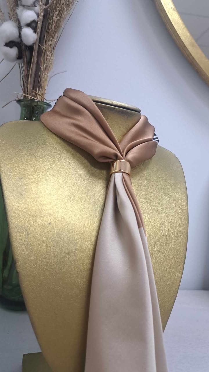 SUJETO A UN ANILLO DORADO EN EL CENTRO, CREANDO CAÍDA FLUIDA Y SOTISFICADA.