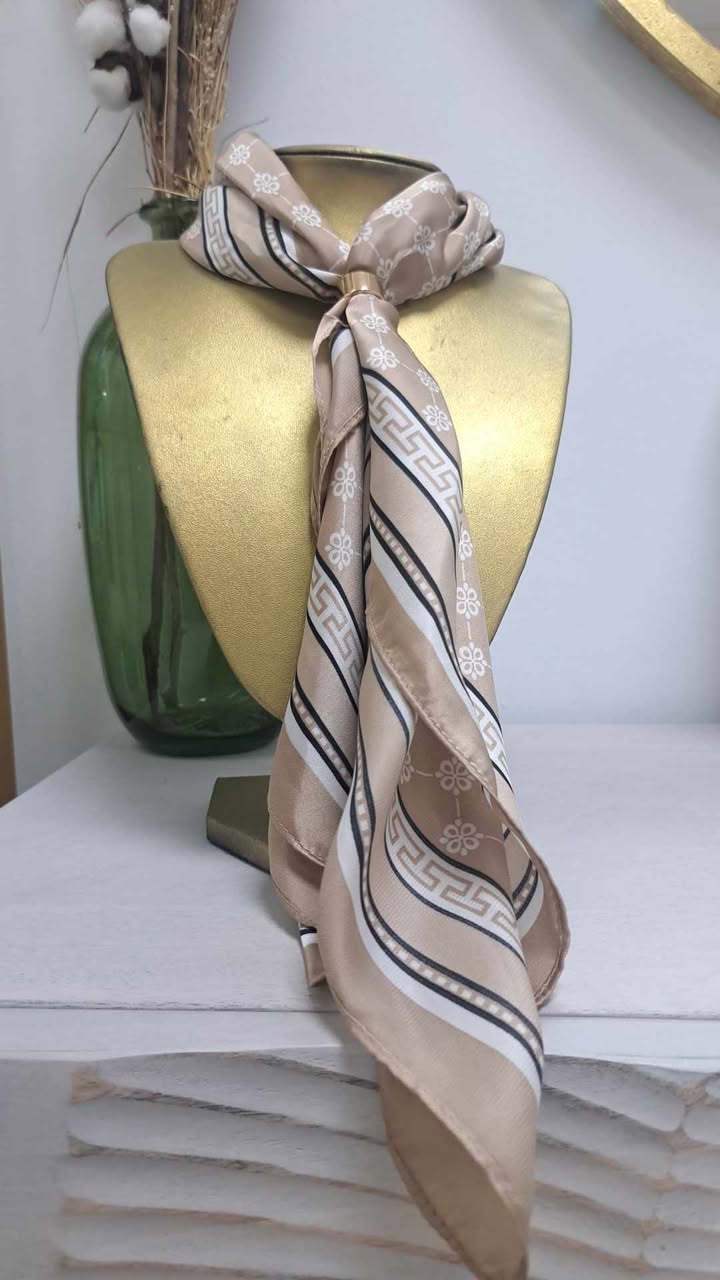 ESTAMPADO DE GRECA CLÁSICA Y DETALLES FLORALES EN CUADRÍCULAS.