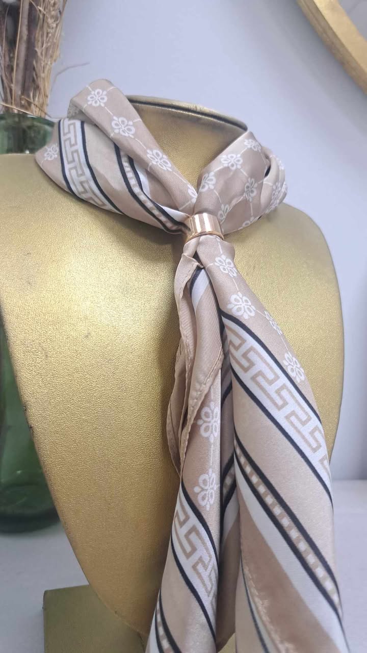 SUJETO A UN ANILLO DORADO EN EL CENTRO, CREANDO CAÍDA FLUIDA Y SOTISFICADA.