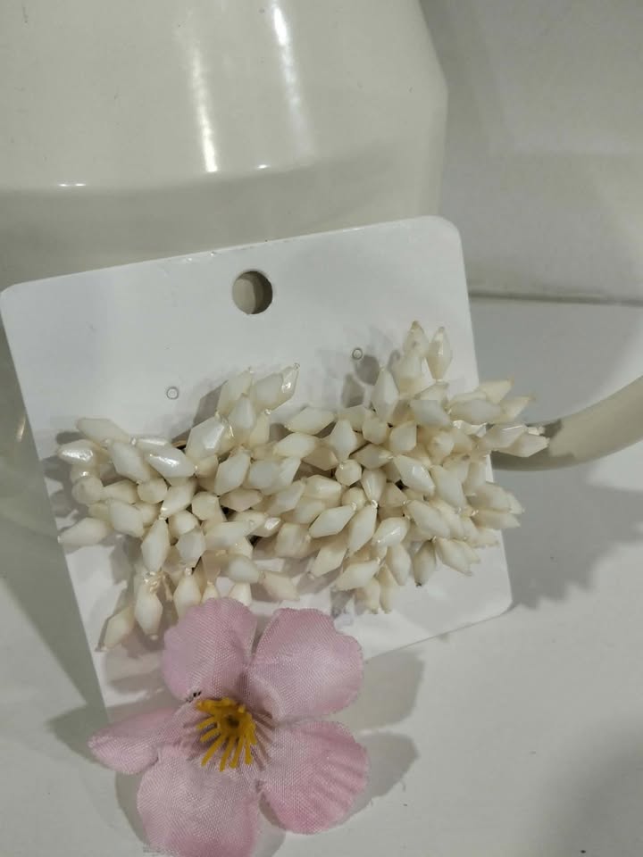 PENDIENTES COMPUESTOS POR UNA DENSA AGRUPACIÓN DE PEQUEÑOS PISTILLOS BLANCOS.