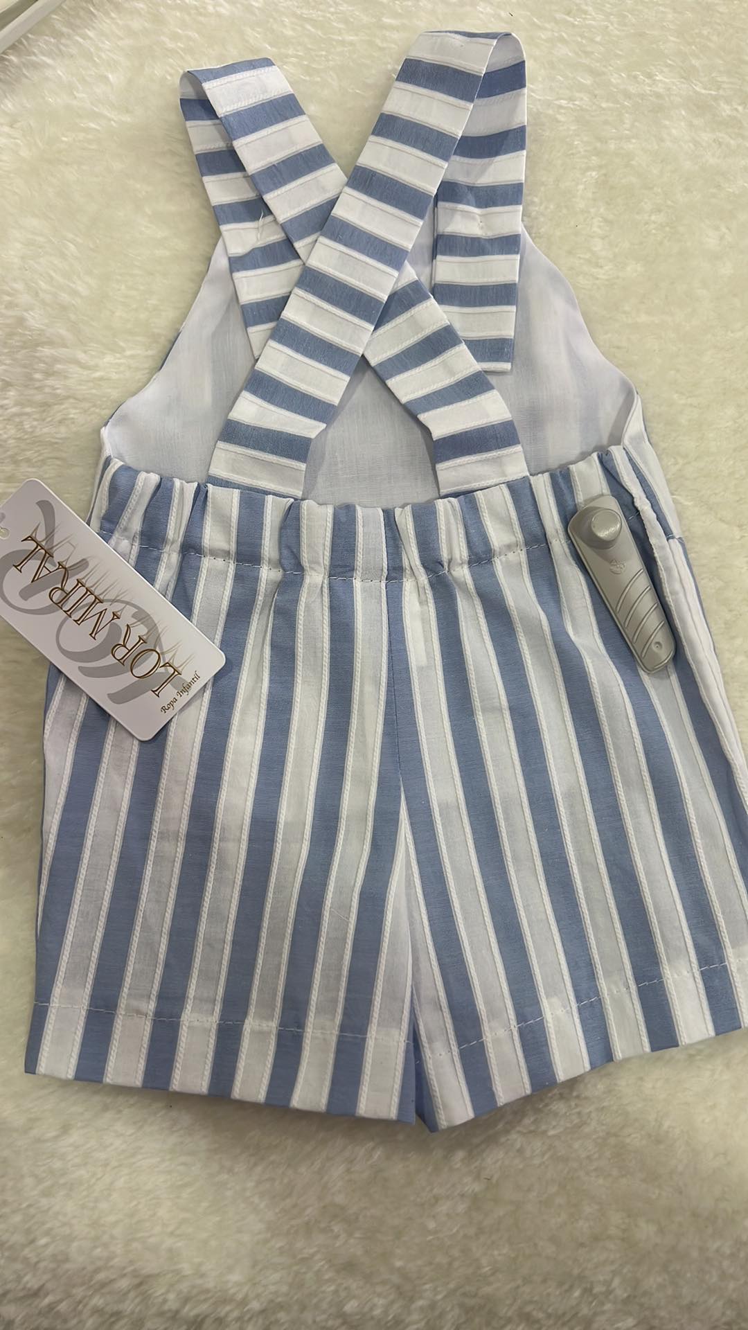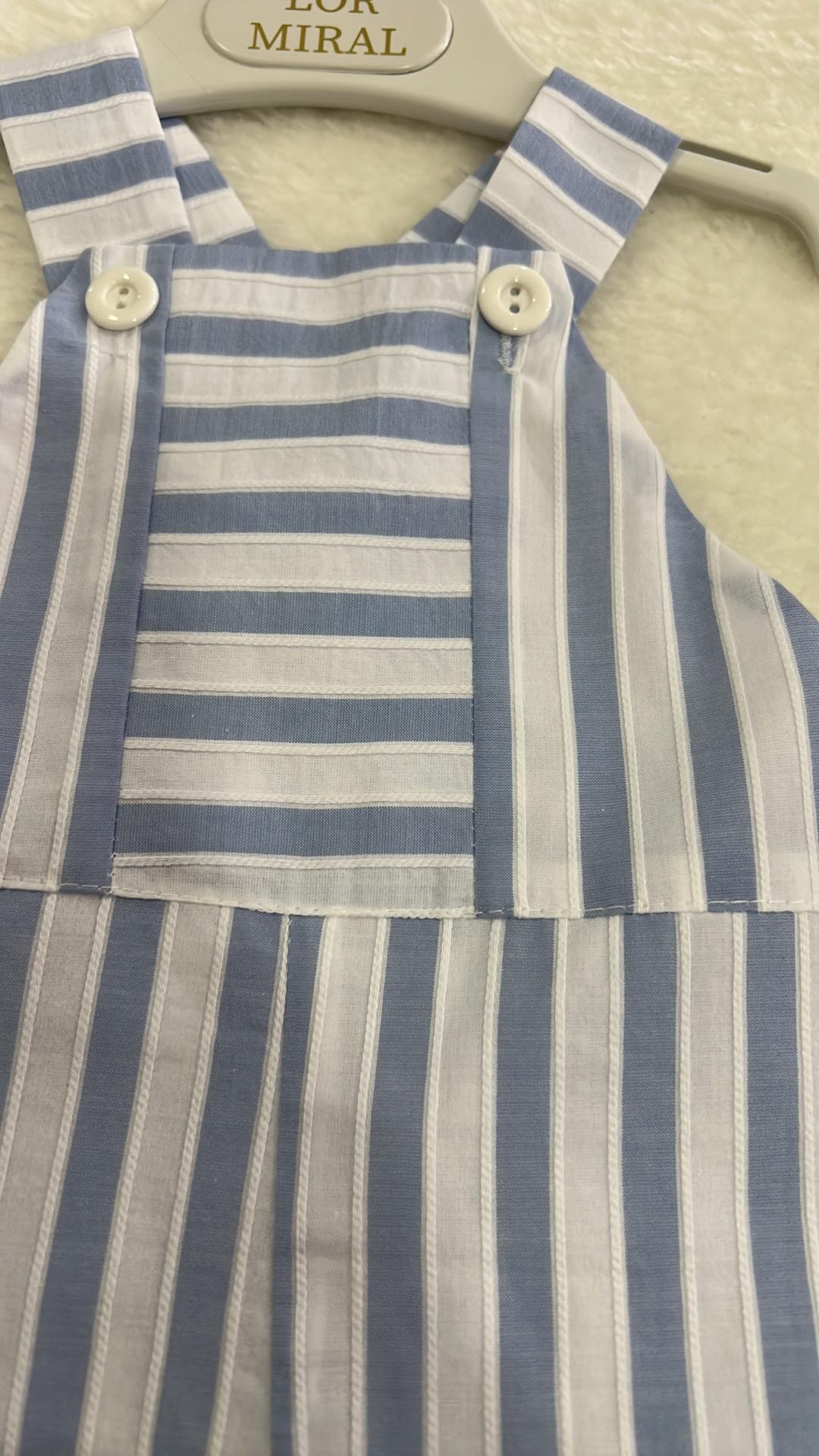 PRECIOSO PETO DE RALLAS EN TONOS CELESTES Y BLANCAS. CIERRE EN LA PARTE DE LOS HOMBROS Y CORTE CRUZADO EN LA ESPALDA.