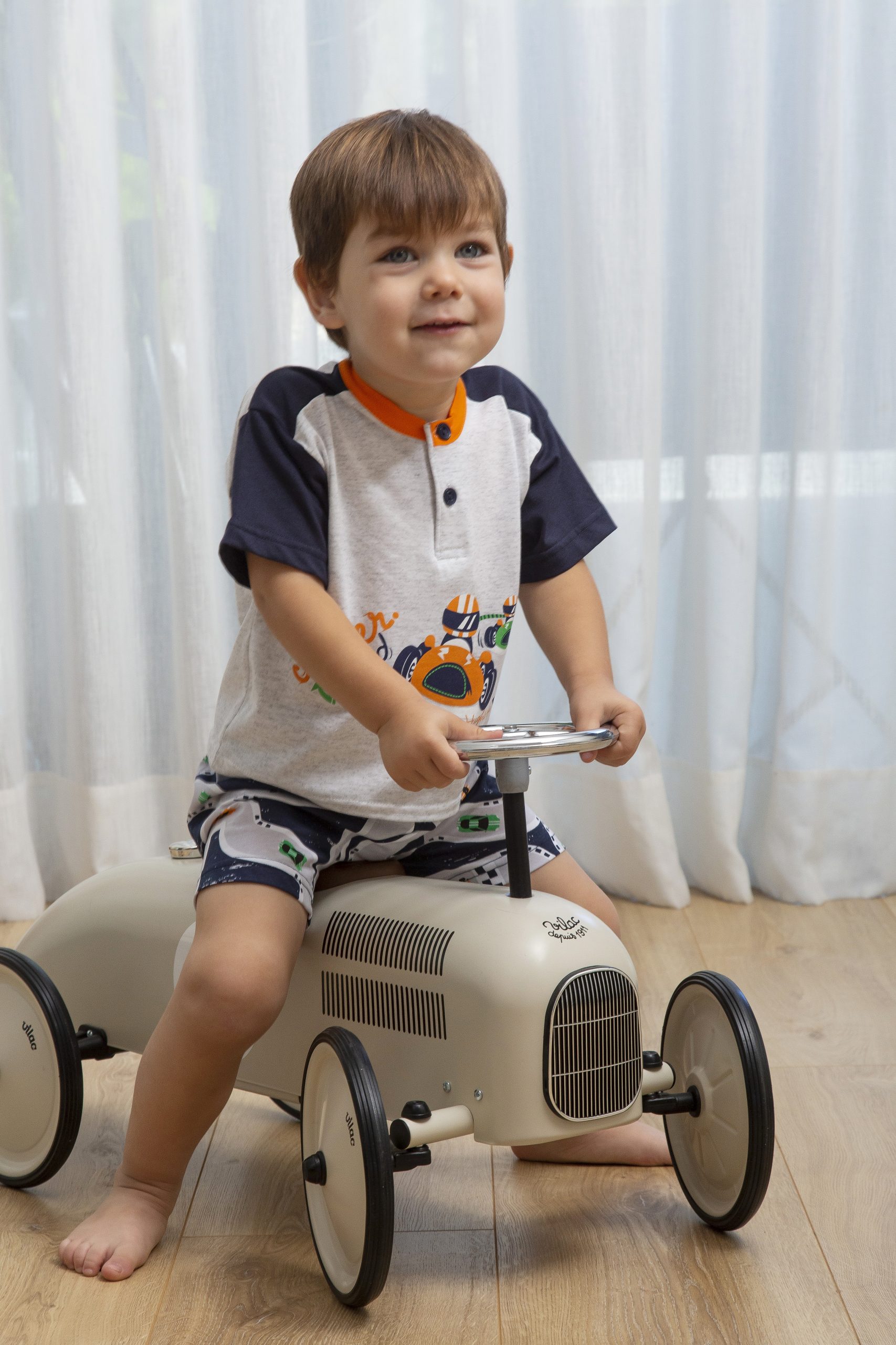 Pecioso modelo de pijama formado por 2 piezas en tejido algodón. Estampado «circuito de coches»