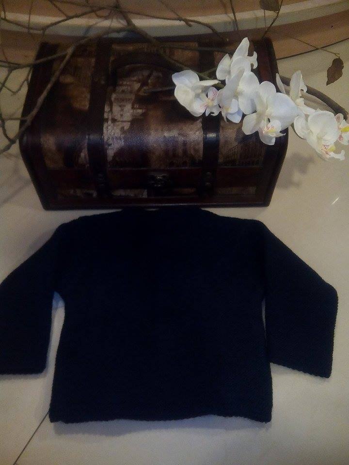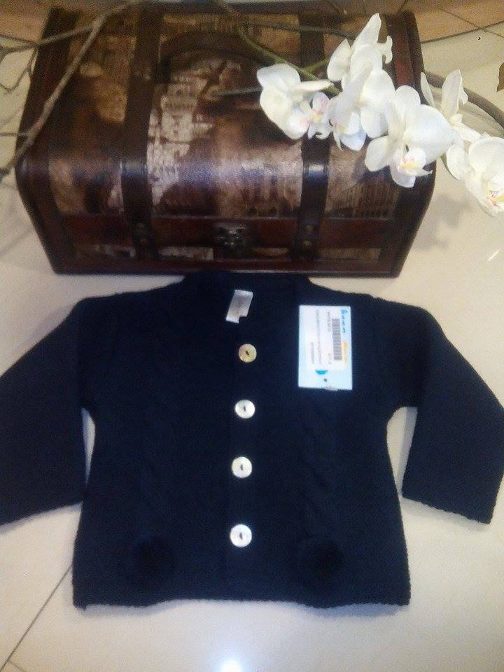 Preciosa rebeca larga color azul marino, cerrada por la parte de delante con dos pompones en la parte de abajo. Nueva colección otoño-Invierno.