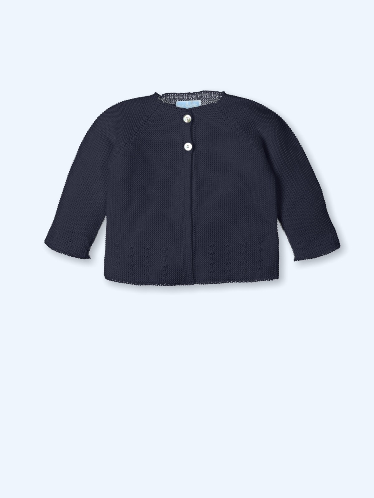 Precioso modelo de rebeca unisex larga con dos botones en la parte delantera.
