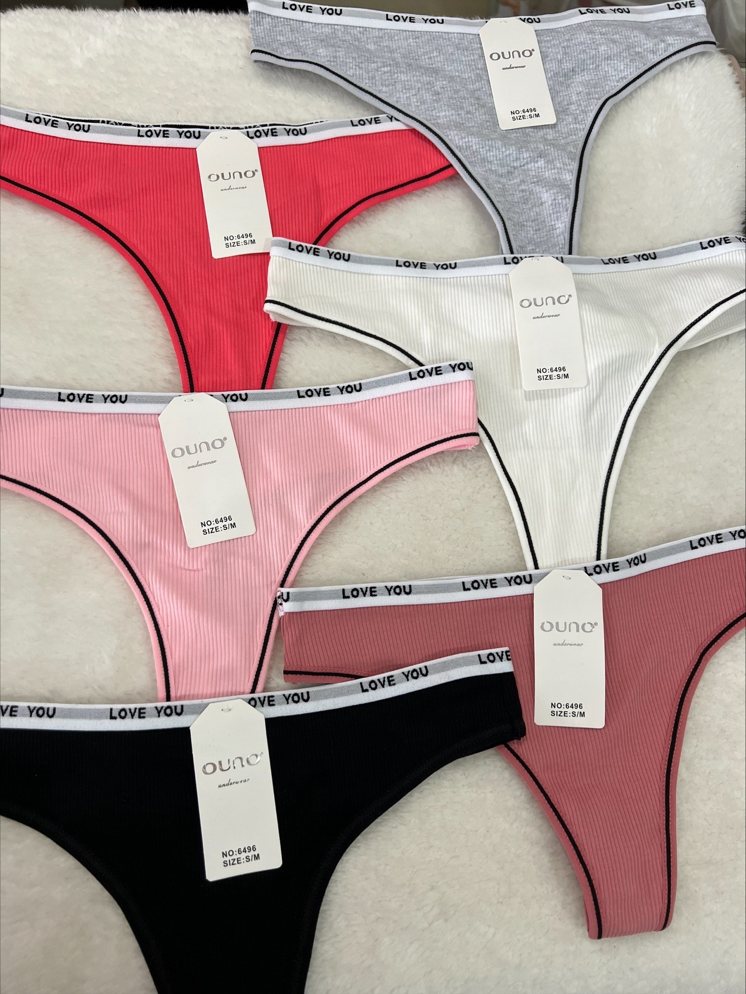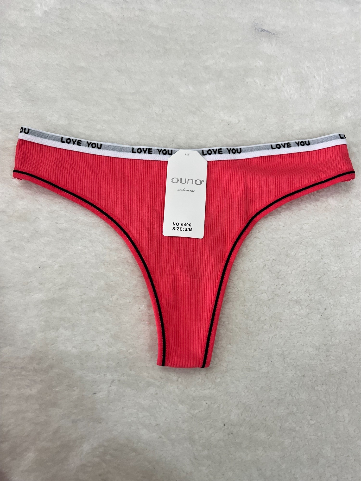 Precioso modelo de tanga de canalé con goma elástica. «Cintillo elástico «love you».