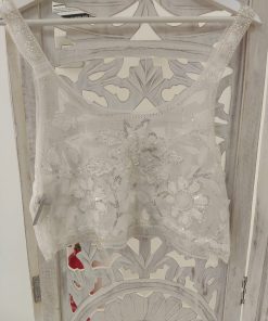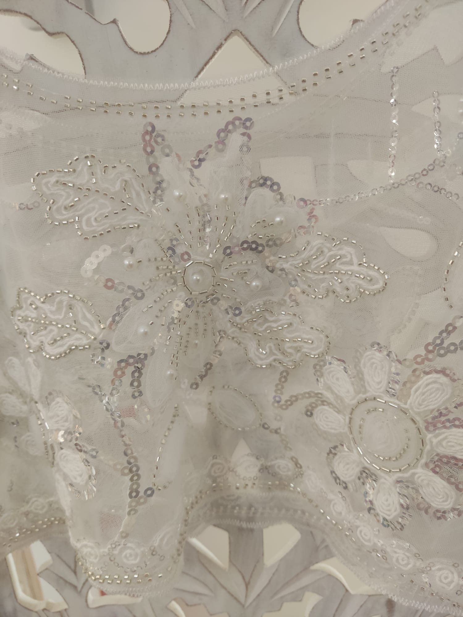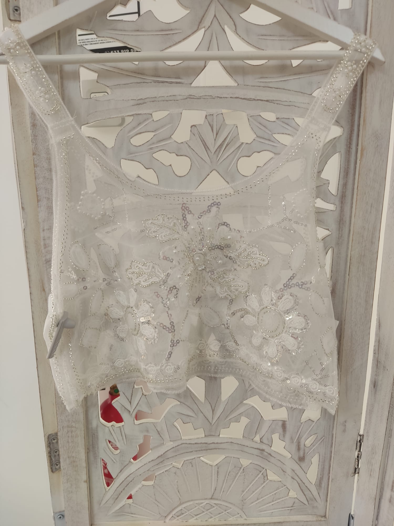 TOP DE TULL CON BORDADOS BLANCOS Y PEDRERÍAS