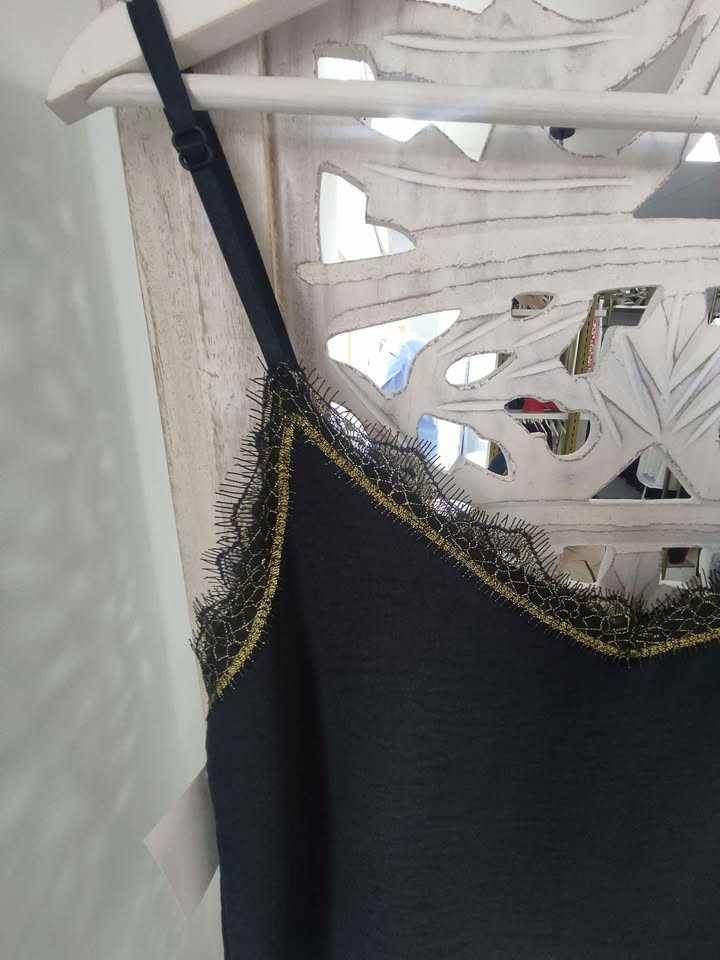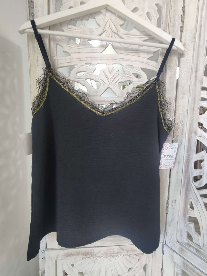 TOP NEGRO LENCERO CON DETALLE DORADO