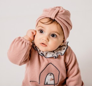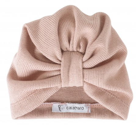Precioso turbante con lazada central y costuras vistas a tono. Color rosa maquillaje.