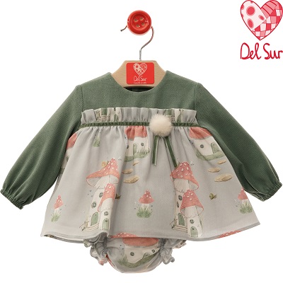 Precioso Vestido corto/Jesusin + braguita a juego para bebé.